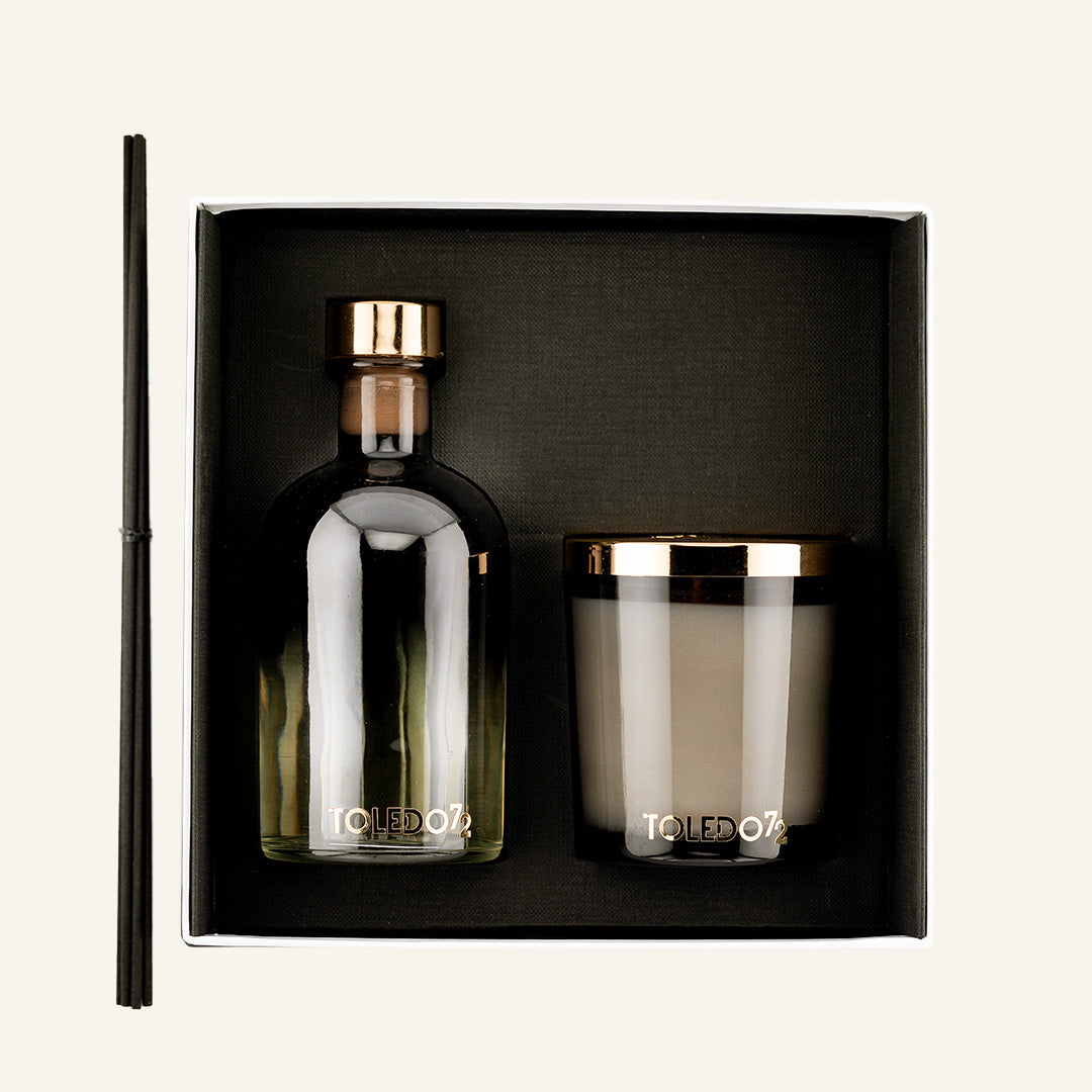 - Set Candela e Diffusore 100 ml – diffusore da 100 ml e candela da 90 g, elegante e compatto.